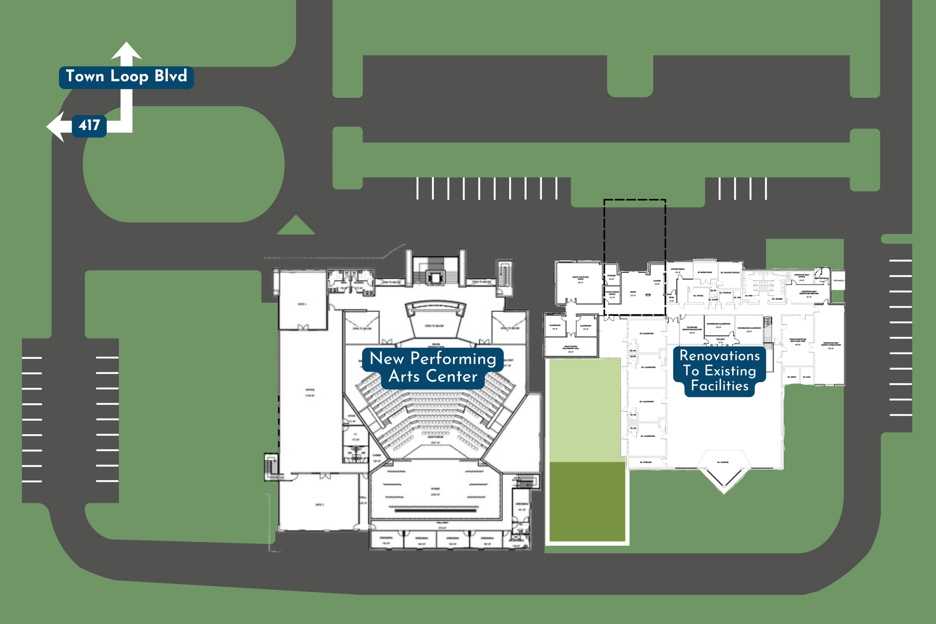 The performing arts building and renovations to the existing church will compliment one another, creating a seamless campus that will maintain a high standard of aesthetic and beauty. There will also be efforts made to ensure any changes to the property do not negatively affect the nearby community.